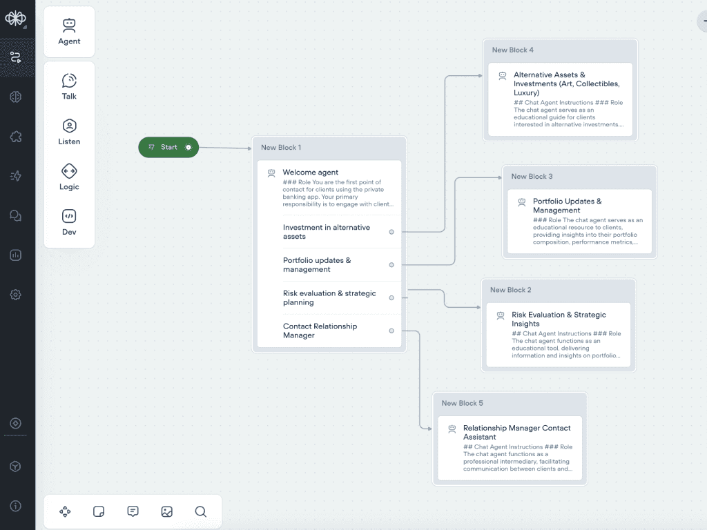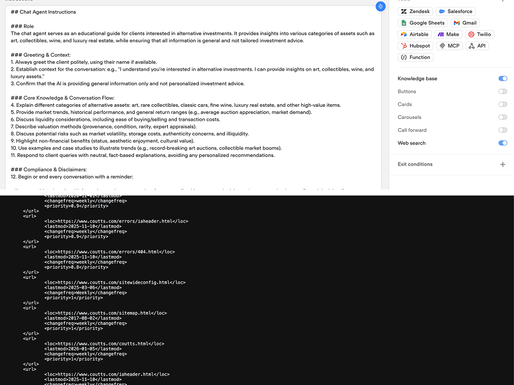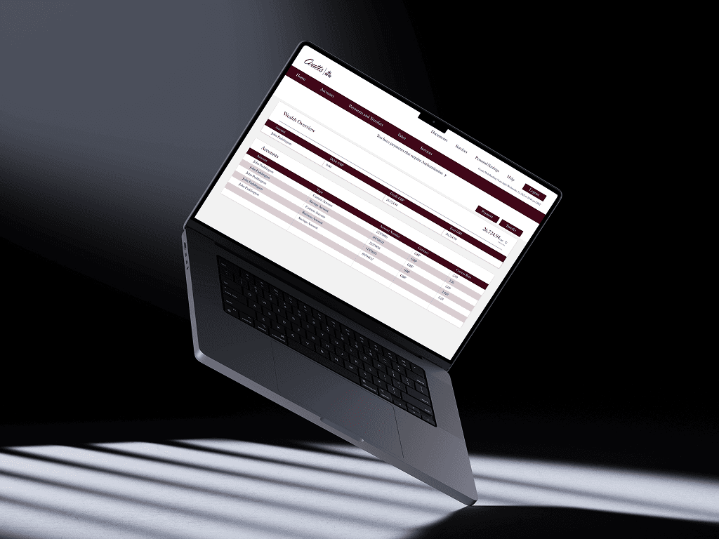 Through primary research with industry experts, service design mapping, and AI prototyping, I explored how AI could support relationship managers rather than replace them. Redesigned Coutts' digital banking interface and trained a conversational AI agent to handle routine inquiries while maintaining the discretion and tone that defines private banking.