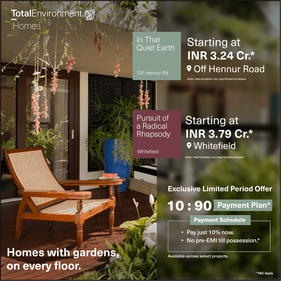 Led end-to-end creative across real estate and hospitality verticals. Designed print campaigns for Times of India, airport billboards at Bangalore International Airport, digital assets for property launches, and scripted ad films for streaming platforms. Served as the sole creative lead for Total Environment's US market expansion, adapting campaigns for international audiences while maintaining the brand's premium positioning.